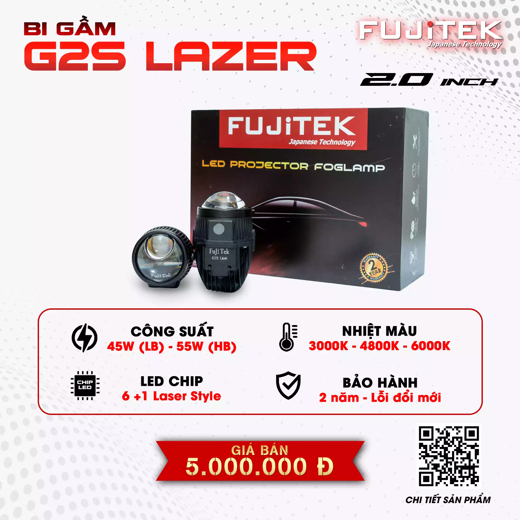 Giới thiệu sản phẩm: “Fujitek G2S Lazer – Bi gầm 2 inch 3 màu tích hợp – nhỏ gọn nhưng mạnh mẽ”.